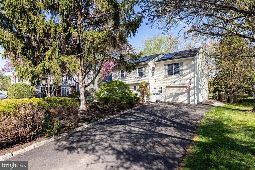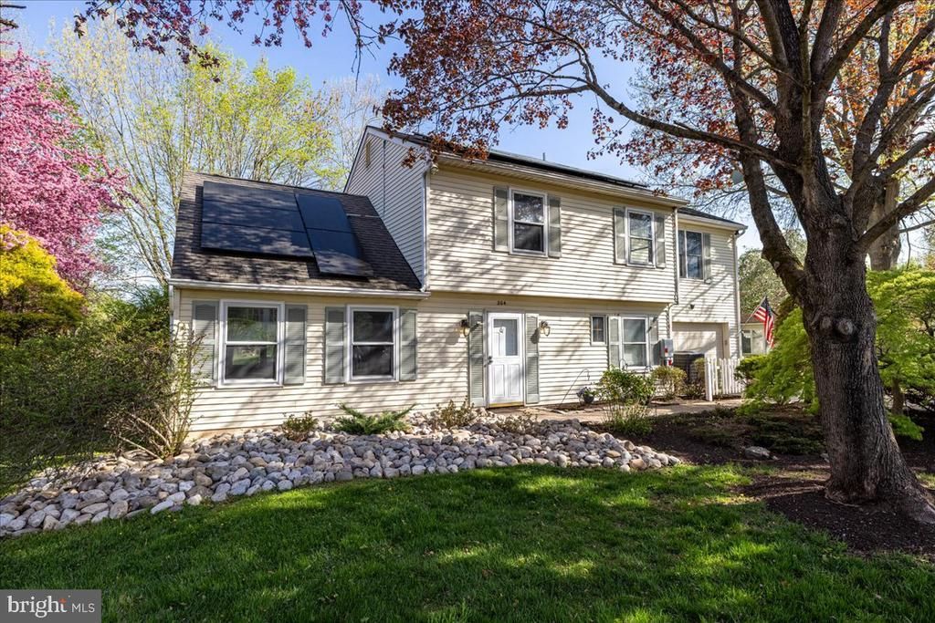 Welcome to this charming Colonial nestled on a quiet cul-de-sac in the desirable Sylversmythe neighborhood, located within the highly sought-after Central Bucks School District. Set on a premium lot, the backyard offers exceptional privacy and plenty of space for play or entertaining, backing to land owned by New Britain Township that connects directly to North Branch Park—featuring baseball fields, soccer fields, and a basketball court. Step inside to a spacious foyer with ample storage. To the left, you’ll find a bright living room and a cozy family room complete with a pellet stove—perfect for gathering on cooler evenings. The expansive kitchen offers abundant cabinet space, an eat-in area, and seamless flow to both the foyer and a convenient back hall, which includes a powder room, laundry room, and access to the garage. The one-car garage has been thoughtfully partially converted into a separate office space with its own rear entrance—ideal for working from home—while still maintaining ample storage in the front portion for a refrigerator, lawn equipment, bikes, and more. Upstairs, the primary suite features an ensuite bath, walk-in closet, and additional walk-in storage space. A generously sized secondary bedroom offers flexibility as a shared space or potential second primary suite. Two additional bedrooms and a full hall bath complete the second floor. Recent updates include brand new carpeting throughout and fresh paint in every room, making this home truly move-in ready. Energy-efficient solar panels help keep utility costs low. Ideally located in Chalfont, this home is just minutes from shopping, dining, and major roadways, offering convenience for everyday living and commuting. Don’t miss your opportunity to call 204 Poplar Rd home!